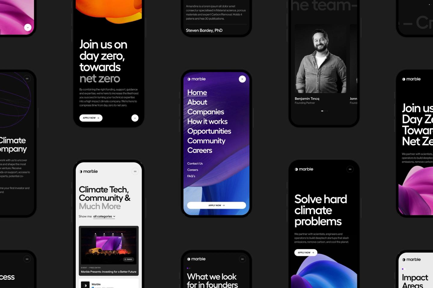 Marble is a climate-tech venture studio founded in 2021, dedicated to accelerating the transition to a sustainable future. With investments in over 30 innovative companies spanning fusion, biotech, AI, and other deep tech fields, Marble is driving significant progress towards a net-zero future. To visually represent Marble's mission and values, Numbered created a distinctive brand identity inspired by the iconic 'Blue Marble' photo taken by the crew of Apollo 17 in 1972, and glass marbles as a metaphor for the collision of ideas. These two ideas were brought to life through custom 3D visuals reminiscent of glass marble art.