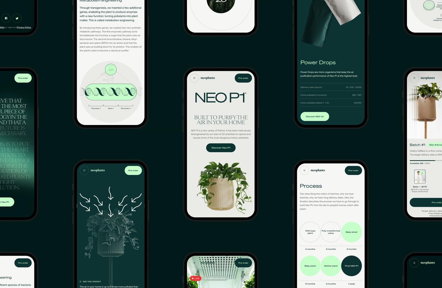 We created custom graphics explaining the science behind the plant, complementing the brand's aesthetic and enhancing the overall user experience. Our team created the visual direction for illustrations, photography, 3D, motion, and the web experience. This includes the lottie animations and optimised sprite sheets for the storytelling section on the science page to ensure the best performance without compromising on quality. Lastly, we integrated an e-commerce platform into the website to enable the client to sell the product online, making sure that the product was showcased effectively. After a successful launch with over 31,000 sign-ups, and featured articles on Forbes, TechCrunch, and MIT Technology Review, NEO P1® became the world's first and only purifying plant available to consumers.